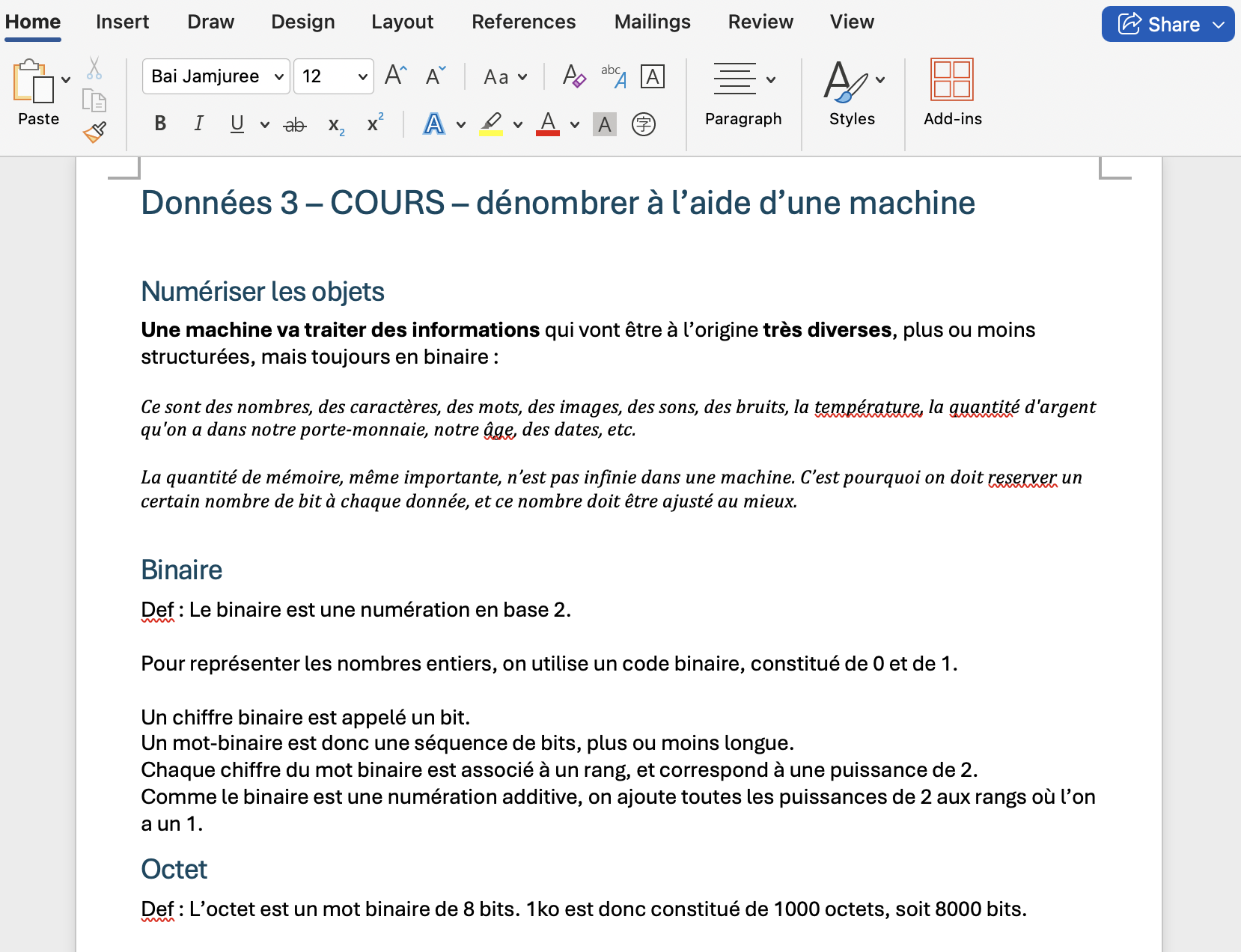 Les fichiers aux extensions docx et odt permettent d’écrire et présenter du texte. La structure du document se fait à l’aide de boutons d’options proposés par le logiciel. Le rendu visuel de la page est présenté par le logiciel au fur et à mesure de sa construction.