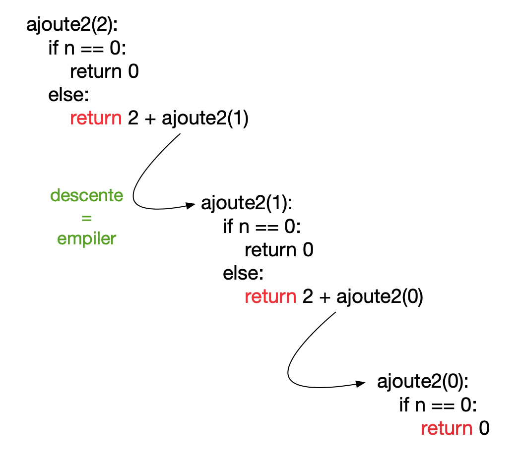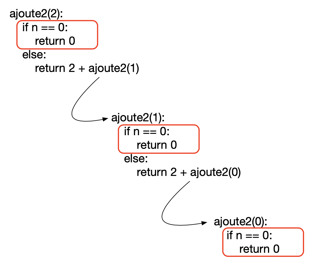 A la fin, ajoute2(4) = 2 + 2 + 2 + 2 + 0 = 8