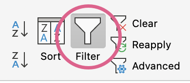 - Dans le bandeau Données, choisir Filtrer (entonoir).
